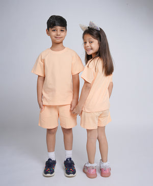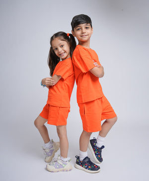 Infuse vibrant energy into your child's wardrobe with our "Viva Magenta Drop Shoulder T-Shirt & Shorts Set". This unisex co-ord set features a half-sleeve, round neck t-shirt with an oversized, super loose fit for ultimate comfort. Crafted from 100% cotton French Terry, it offers breathability and softness. The drawstring shorts come with side pockets, ensuring practicality and ease of wear.